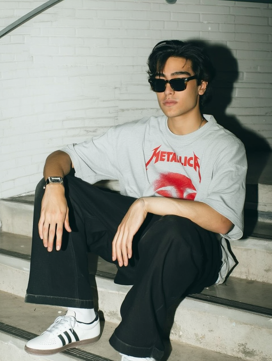 Baggy cargos? Check. Distressed denim? Check. Layered under an open flannel or leather jacket? Absolute fire. Add some silver chains and chunky sneakers to complete the look.