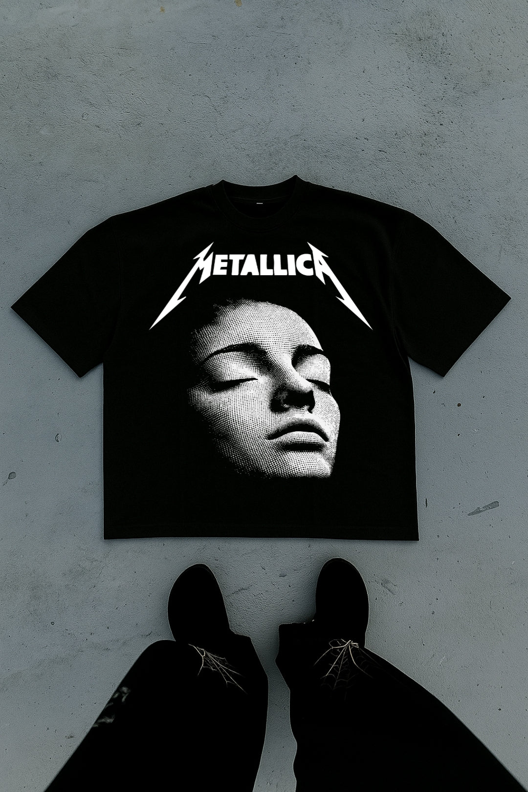 Live loud. Dress darker. A bold metal-inspired graphic tee featuring a high-contrast halftone face and electric bolt typography. Designed for those who donβt follow trends β they create them.
